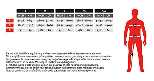 - Tórax 42"-44" / cintura 36"-38" / entrepiernas 33"