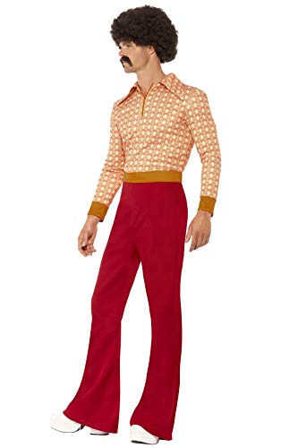 Smiffy'S 43189L Traje De Auténtico Chico De Los 70 Con Top Y Pantalones De Talle Alto, Rojo, L - Tamaño 42"-44"