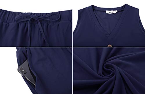 Irevial Conjunto chandal deportivo mujer Verano chandal Completos pantalon corto mujer Conjunto de Ropa deporte corta Chandal Mujer de Sin mangas con Botones Dos Piezas Moda
