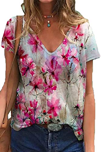 Wsgyjhua 2021 Primavera Y Verano Nueva Camiseta Estampada De Mujer Suelta con Cuello En V Hipster Callejero Europeo Y Americano