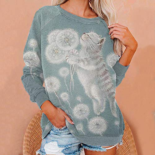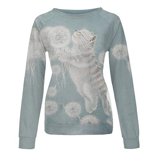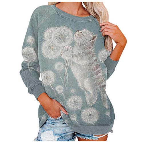 Amaeen Camiseta Manga Larga Mujer Invierno 2020-2021 Rebajas Talla Grande Tops Casuales de la Sudadera Informal con Estampado Ropa para Señoras de 18 a 35 Años (Azul, L)