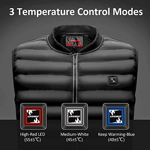 LIFEBEE Chaleco Térmico Electrico para Hombre y Mujer, Chaleco Calefactable Eléctrico Lavable Ajustable con Cable USB, Chaleco Calefactor con 3 Temperatura Controles para Senderismo, Caza, Ciclismo