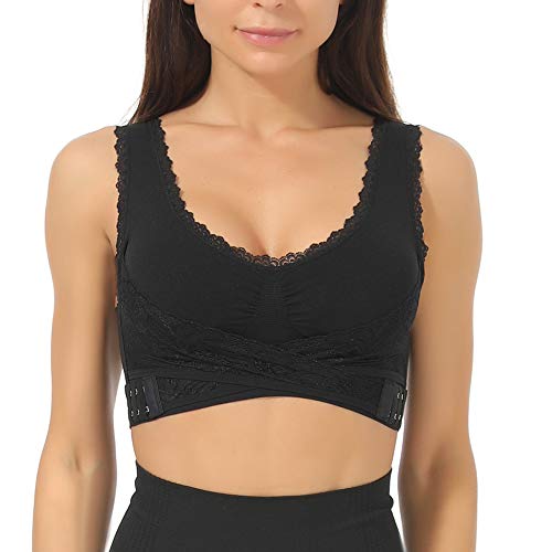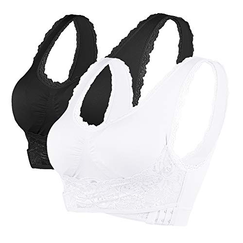 Litthing Sujetador Deportivo Sujetador inalámbrico de Encaje Sujetador sin Costuras Sujetador cómodo de la Ropa Interior Sin Gimnasio Push-up Bra Yoga Entrenamiento Correr Boxeo (XL, Negro+ Blanco)