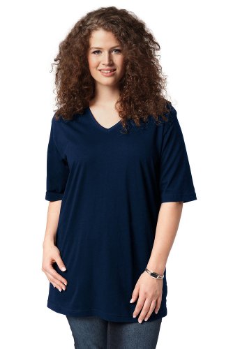 Ulla Popken V-Ausschnitt, Camiseta para Mujer, Azul (Blau 71), 44/46