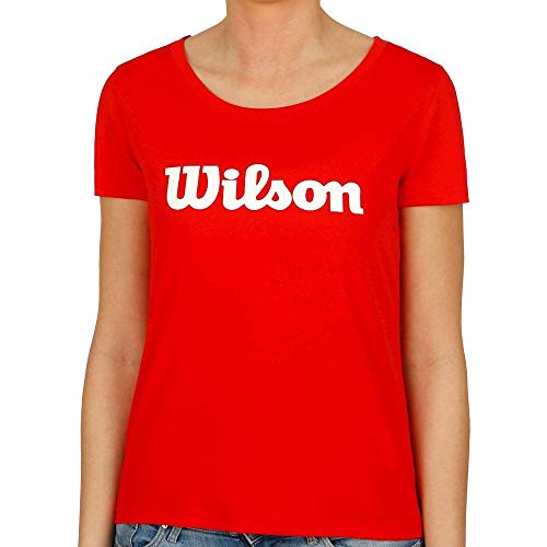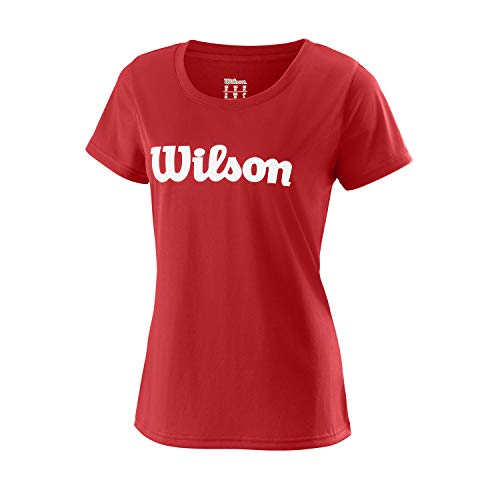 Wilson Mujer, W UWII SCRIPT TECH TEE, Camiseta de tenis manga corta, Poliéster, Rojo (Wilson Red)/Blanco, Talla XS, WRA770510