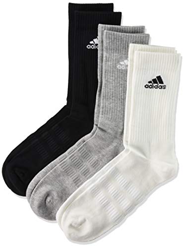 adidas Cushioned Crew Calcetines, Multicolor (Negro/Gris/Blanco), M (Pack de 3) Unisex adulto