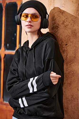 ABRAVO Mujer Sudadera con Capucha Manga Larga Jerséis Sueltos Sudadera con Estampado la Camiseta Otoño Invierno Mujer Chándal (L, Rayado Blanco)