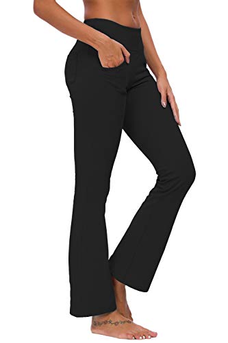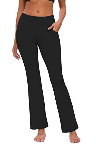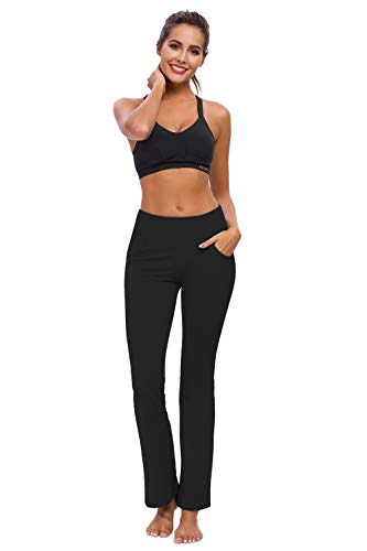 TownCat Pantalones de chándal de Mujer Pantalones de Yoga Acampanados Pantalones de Fitness Pantalones de Yoga con Bolsillos (Negro, XXL)