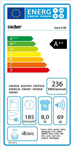 Sauber - Secadora de Bomba de Calor SERIE 5-8B 8 kg - Eficiencia energética: A++ - INSTALACIÓN INCLUIDA