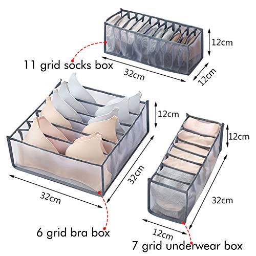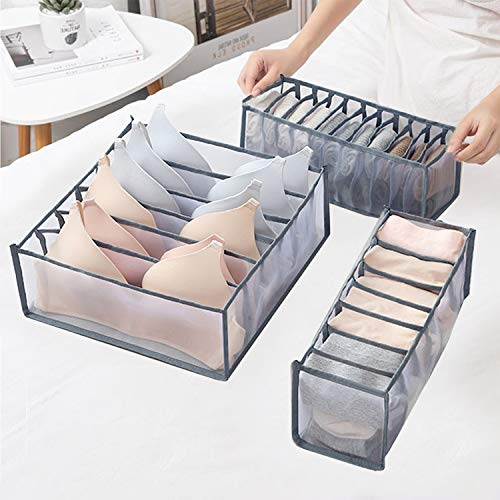Xnuoyo 3 Pcs Organizador Ropa Interior Caja De Almacenamiento De Ropa Interior Plegable Con Compartimento Se Utiliza para Guardar Ropa Interior, Calcetines, Sujetadores, Corbatas (Gris)