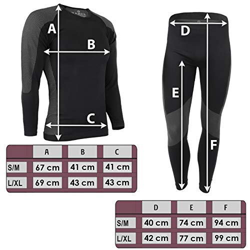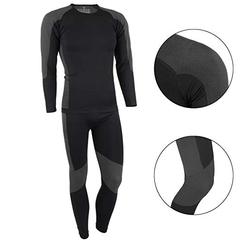 ALPIDEX Set de Ropa Térmica para Hombre, Ropa Interior para esquí - Transpirable, cálida y de Secado rápido, Tamaño:S/M, Color:Black-Grey