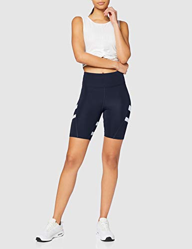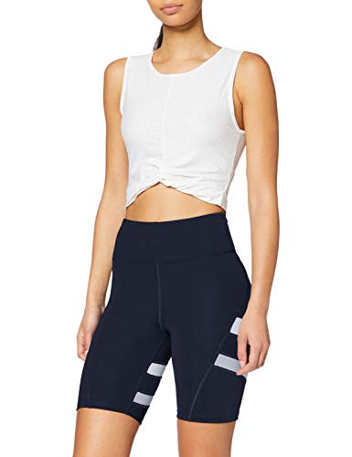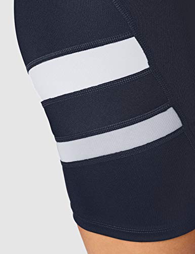 Marca Amazon - AURIQUE Shorts para Correr con Banda Lateral Mujer, Azul (Navy/White), 38, Label:S