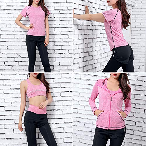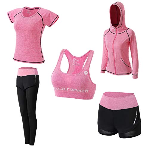 Ropa Deportiva Mujer,5 Piezas Conjuntos Deportivos para Mujer Yoga Fitness Deporte Chándales Ropa de Correr Conjunto de Gimnasio Ejercicio Carrera Entrenamiento Transpirable Cómodo
