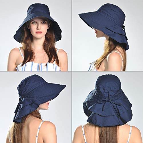 Comhats Gorra de Verano con Visera y protección para el Cuello, con cordón, para Mujer Sombrero (UPF 50+) Azul Oscuro