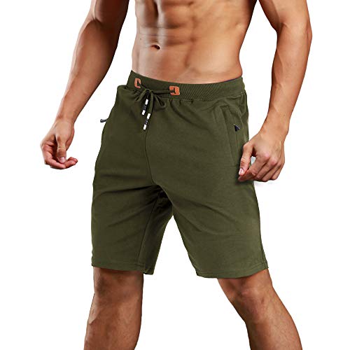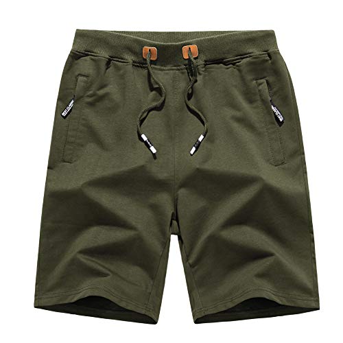 MAGCOMSEN Pantalones cortos de entrenamiento para hombre, para exteriores, de algodón, para verano, transpirables, para correr, para el tiempo libre, con cintura elástica, verde militar, 36