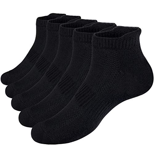 VoJoPi 5 Pares Calcetines Running Hombre, Calcetines Deporte Tobilleros con Anti-Rozaduras, Calcetines Algodon Transpirables para Fitness, Maratón, Tenis 39-46, Negro