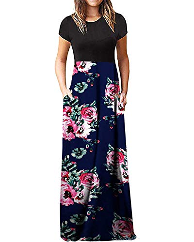 Kidsform Vestidos Mujer Verano Vestidos Largos Manga Larga Cuello Redondo Elasticidad Comodo Tallas Grandes Vestidos Mujer Casual J-Flor Azul S