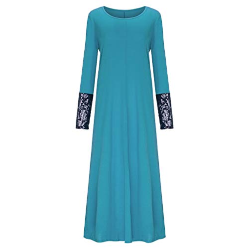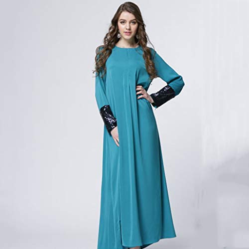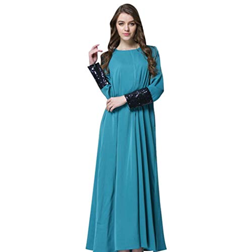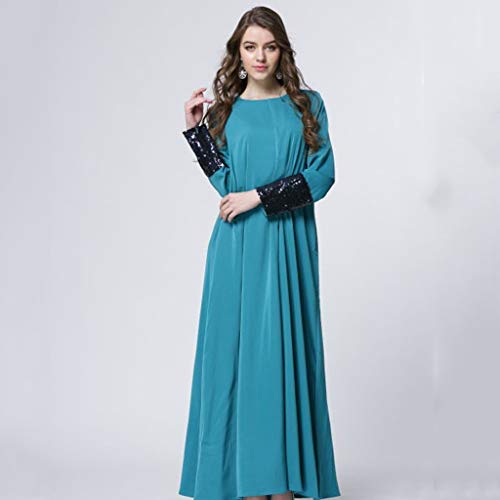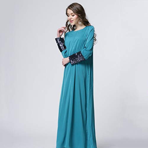 VEMOW Vestido Mujer Cuello Redondo Sólido Manga Larga Lentejuela Labor de Retazos Musulmán de Manga Personalizado Largo Vestir OtoñO Summer(A Verde,4XL)