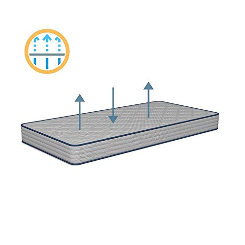 - ? MATERIALES DE ÚLTIMA GENERACIÓN | La cara posterior es de tejido 3D microperforado, dispone de una cámara de aire interior antiasfixia. Además, regula la temperatura en los meses más calurosos. Tejido elástico strech ergonómico antiácaros.