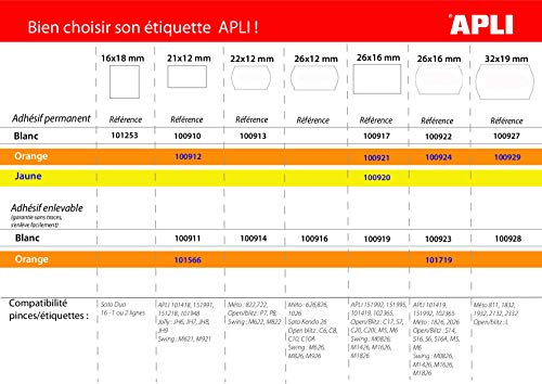 - Hace etiquetas rectangulares con un tamaño de 21 x 12 mm