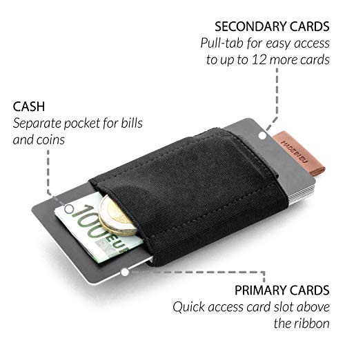 - ESPACIO PARA CADA TARJETA: utilice el compartimento principal para el resto de tarjetas. La cinta de tracción de la minicartera también permite acceder a la tarjeta necesaria incluso cuando se llevan muchas tarjetas. Compartimento por separado para billetes y monedas.