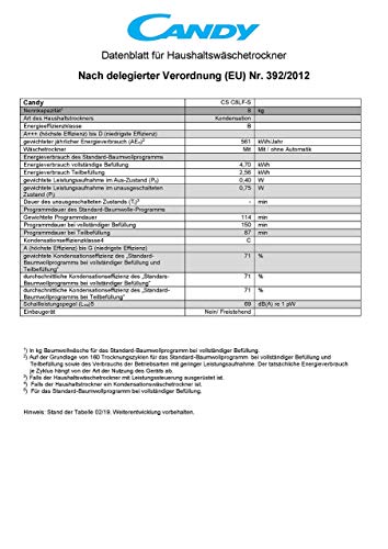 Candy CS C8LF-S - Secadora de condensación 8Kgs, 15 programas, NFC, puerta XXL, display LED, certificado Woolmark, , clase BC, color blanco