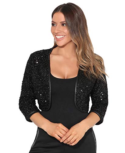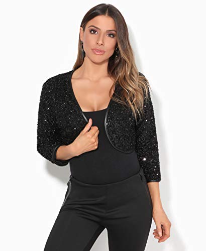 KRISP Bolero Elegante Mujer Fiesta Torera Talla Grande Punto Boda Blazer Traje Americana Chaqueta para Vestido, Negro - (7363), 48 EU (20 UK), 7363-BLK-20