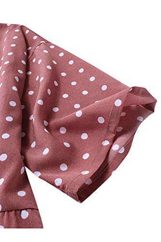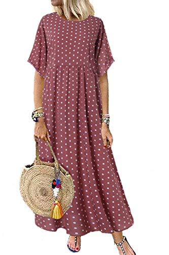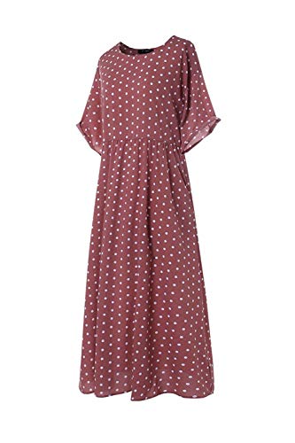 Mujeres Verano Casual Vestido Suelto Polka Dot Algodón Maxi Vestidos Talla Grande Vino XL