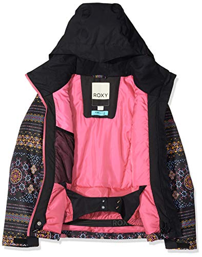 Roxy Delski-Chaqueta para Nieve para Chicas 8-16, Niñas, True Black albama Border, 12/L