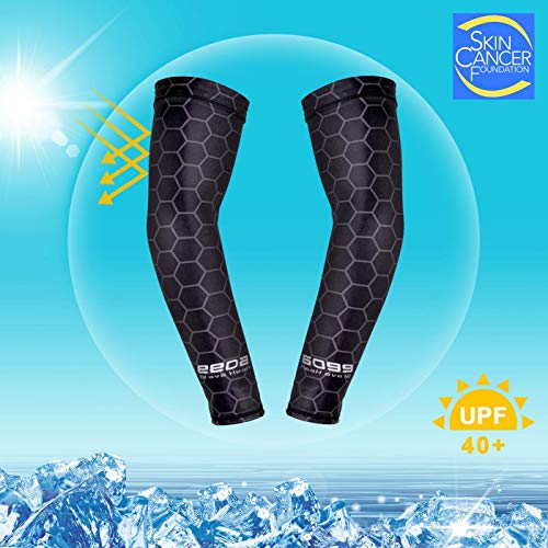 Bwiv Unisex Manguitos del Brazo para Deportes Anti UV UPF 40+ en Forma de Panal Manguitos refrescantes para Actividades al Aire Libre 1 par Negro S