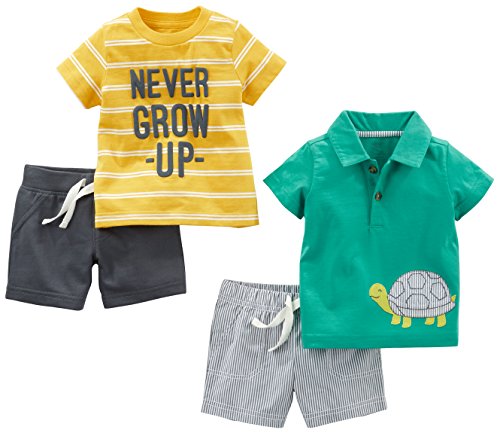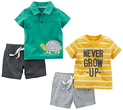 Simple Joys by Carter's - Juego de ropa de juego para niños (4 piezas) ,Yellow Stripe/Green Turtle ,18 Months