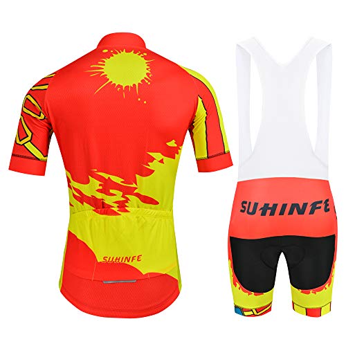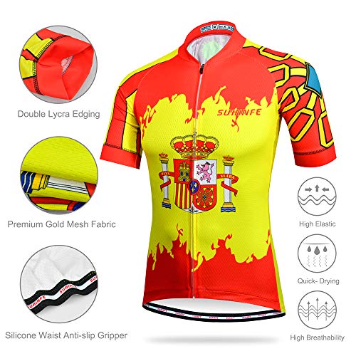 SUHINFE Traje Ciclismo Hombre para Verano, Ciclismo Maillot y Culotte Ciclismo Culote Bicicleta con 7D Gel Pad para Deportes al Aire Libre Ciclo Bicicleta, Bandera de España, S