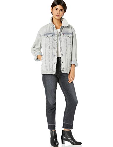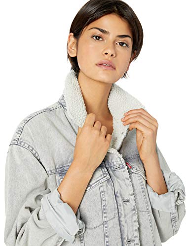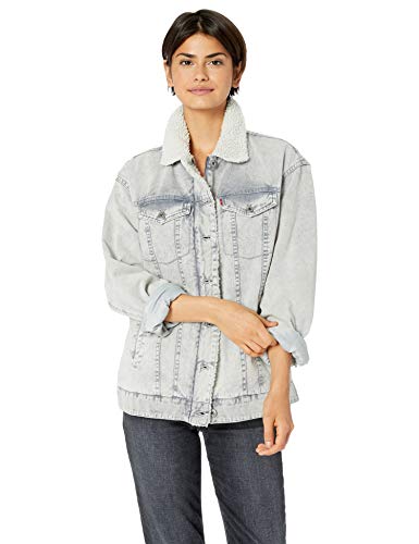 Levi's Women's Oversized Acid Washed Cotton Sherpa Trucker Jacket Grey, X-Large