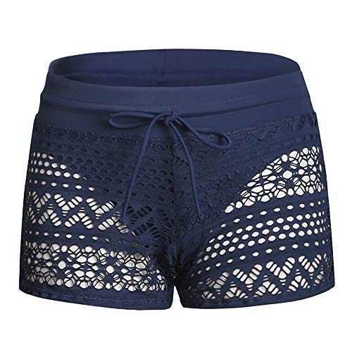 Dolamen Mujer Shorts de baño, trajes de baño Bañador Deportivo Traje de Baño Bañador de natación Bikini Para Mujer bragas pantalones cortos, Con cordón ajustable Estilo boyleg (Large, Negro)
