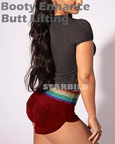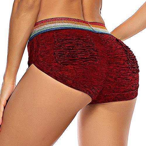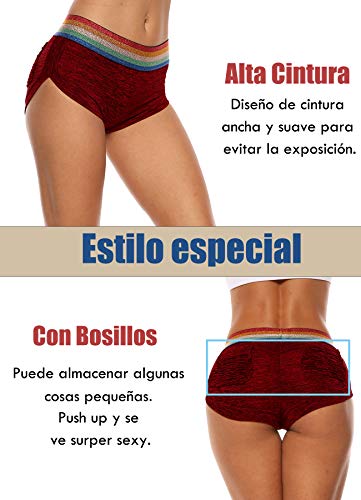 STARBILD Shorts Pantalones Cortos Deportivos Cintura Alta Elástica para Push UP Control de Barriga para Mujer Yoga Diario Correr Fitness Rojo L