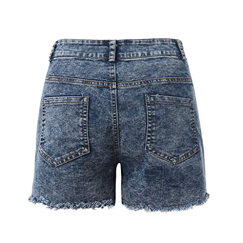 QinMMROPA Vaqueros Rotos Cortos para Mujer y niña, Pantalones Cortos Ajustados Boyfriends Rotos Short Jeans Mujeres Sexy Pantalon Cielo(Blue) S
