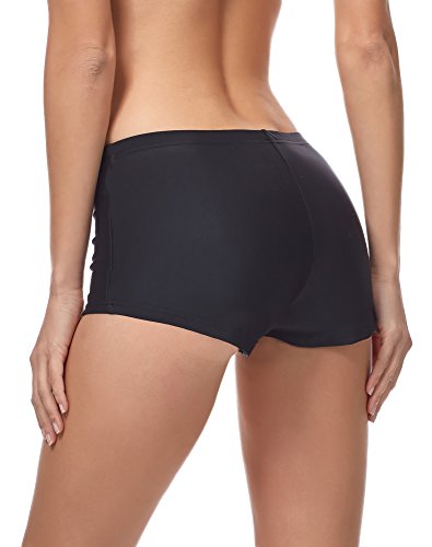 Dolamen Mujer Shorts de baño, trajes de baño Bañador Deportivo Traje de Baño Bañador de natación Bikini Para Mujer bragas pantalones cortos, Con cordón ajustable Estilo boyleg (Medium, Negro)