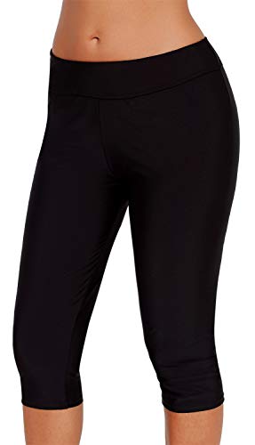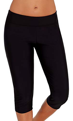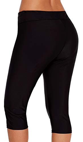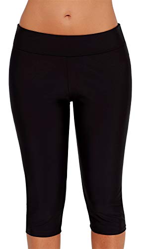 Ocean Plus Mujer Protección UV Negro Shorts hasta la Rodilla Bañador 3/4 Pierna Traje de Baño Parte Inferior del Bikini Talla Extra Leggings de Natacion (XXL (EU 42-44), Black)