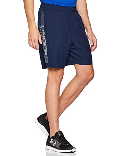 Under Armour Woven Graphic Wordmark Shorts Pantalones de hombre, pantalón corto ultraligero y transpirable, cómodo y ancho pantalón de deporte, Academy/Graphite (408), MD