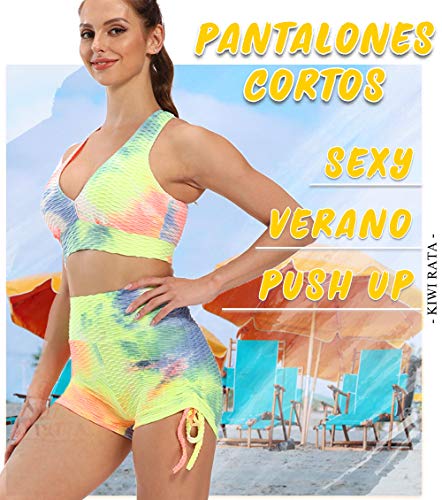 Lalamelon Mallas Cortas Push Up Mujer Pantalones Cortos Deportivos Cintura Alta Yoga Leggings Pantalón de Verano Fitness Leggins Shorts Running Elásticos Cómodo y Transpirable