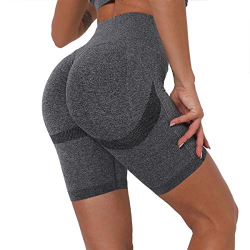 N\C Pantalones Cortos Deportivos Leggings Mujer, Shorts de Yoga Fitness, Mallas Yoga Cintura Alta Shorts Leggins Elásticos Push Up Suave para Correr Gym Mallas Deportivos, Gris Oscuro/M