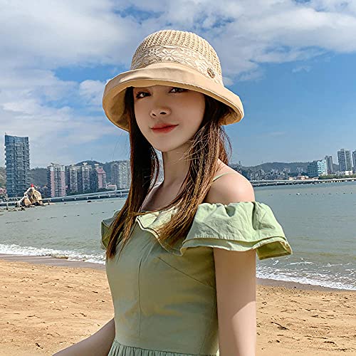 Geekcook Sombrero cordobes Mujer,2021 Nuevas señoras Sombrilla de Sol de Verano Sombrero de protección Solar con Solar Transpirable Solar al Aire Libre Olla Salvaje Sombrero-Beige_M (56-58cm)