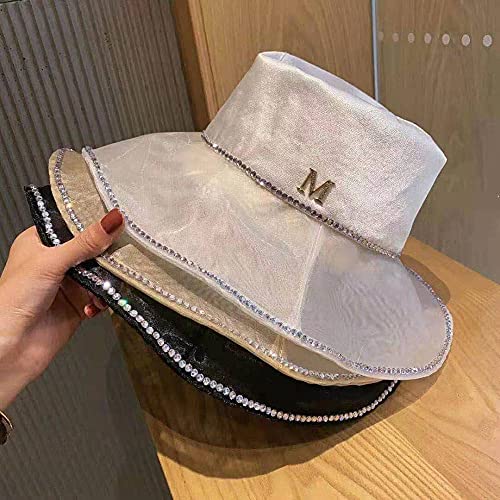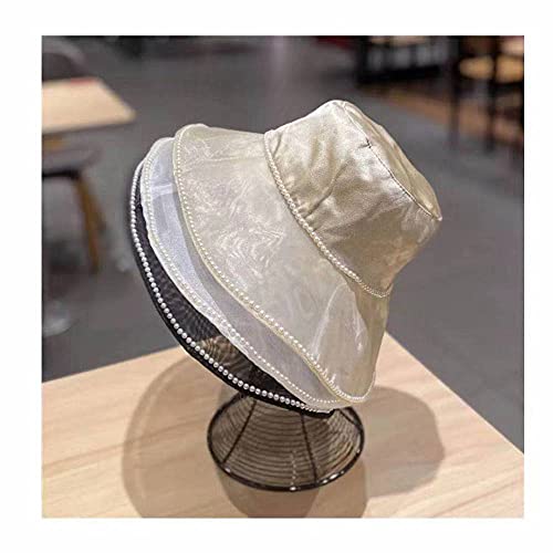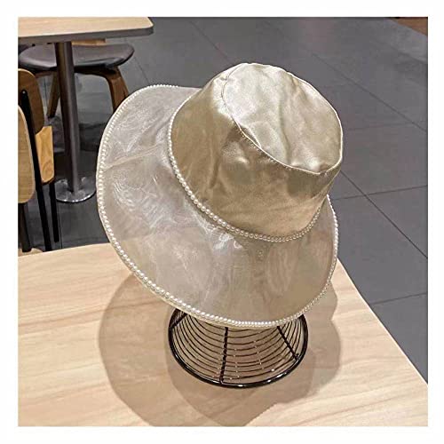 Geekcook Sombrero cordobes Mujer,Grande Pescador Sombrero Viaje al Aire Libre Sol Sombrero Moda Taladro de Agua Malla Gran Sombrero señoras Adulto Sombrero-Pearl - Champagne