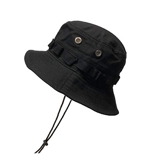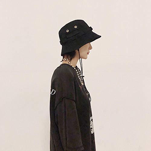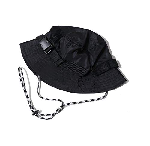 Sombrero De Copa Sombrero De Cubo De Cuerda A Prueba De Viento Señoras Mujeres Hombres Sol Sombrero De Pesca De ala Ancha Sombrero De Pescador Panamá Pop Hip Hop Caza Outdoor-Black_L_58-60Cm