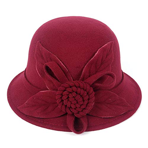 Sombrero De Copa Sombrero De Cubo De Invierno Mujer Flor Mujer Fedoras Señoras Elegante Bombín Amarillo Negro Rojo Gris-New_Winered