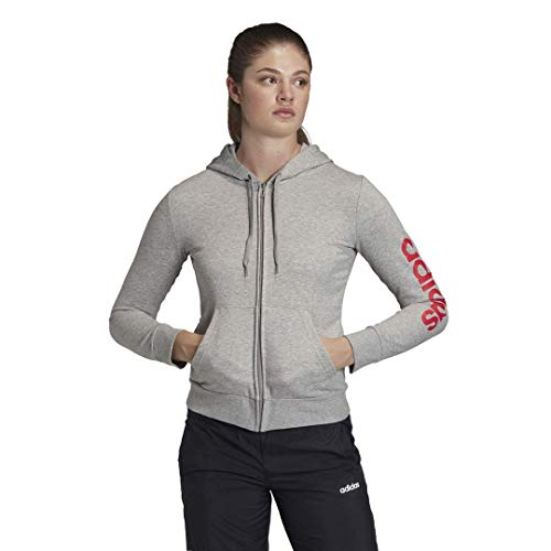 adidas Mujer Essentials Linear Sudadera con capucha con cremallera completa Medium Gray Heather/Core Pink XS