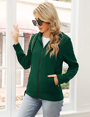 - 【Diseño】Sudadera mujer cremallera delantera con dos bolsillos, capucha con cordón. y los 2 bolsillos laterales son convenientes para que guardes tus pertenencias personales como el teléfono y la llave. Sudadera de color liso, cárdigan deportivo sencillo y clásico.