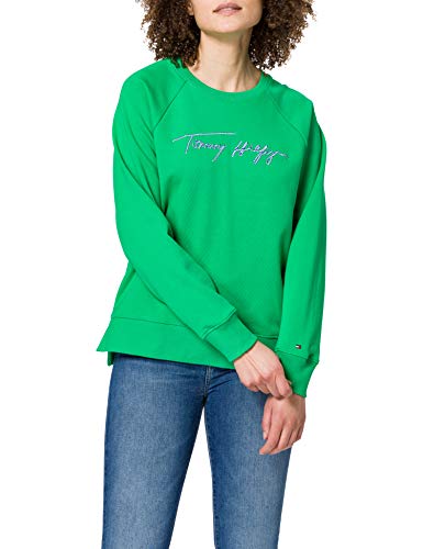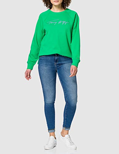 Tommy Hilfiger Relaxed Script C-NK Sweatshirt Sudadera, Verde primario, XS para Mujer
