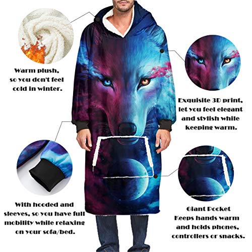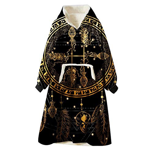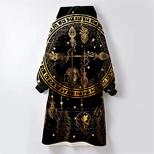 Odot Oversize Hoodie con Felpa, 3D Impresión Usable Bolsillo Bata Manta Sudadera con Capuch Caliente Chaqueta para Casa Sofá TV Oficina Cámping Invierno Hombre Mujer (Un tamaño,Negro)