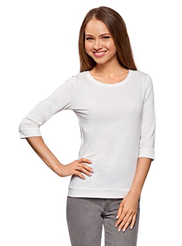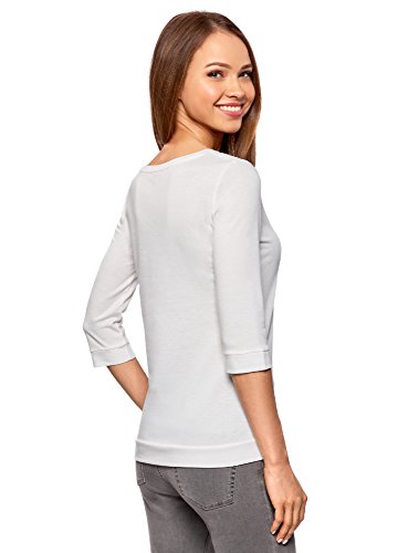 oodji Ultra Mujer Suéter Básico de Manga 3/4, Blanco, ES 40 / M